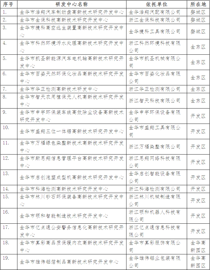 擬組建金華市高新技術(shù)研究開發(fā)中心名單